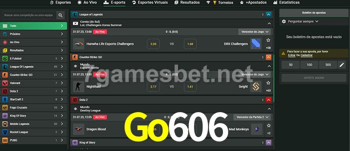 A aposta Go606 oferece aos jogadores a experiência mais conveniente de apostas em eSports!